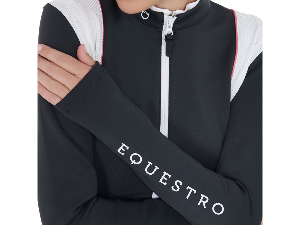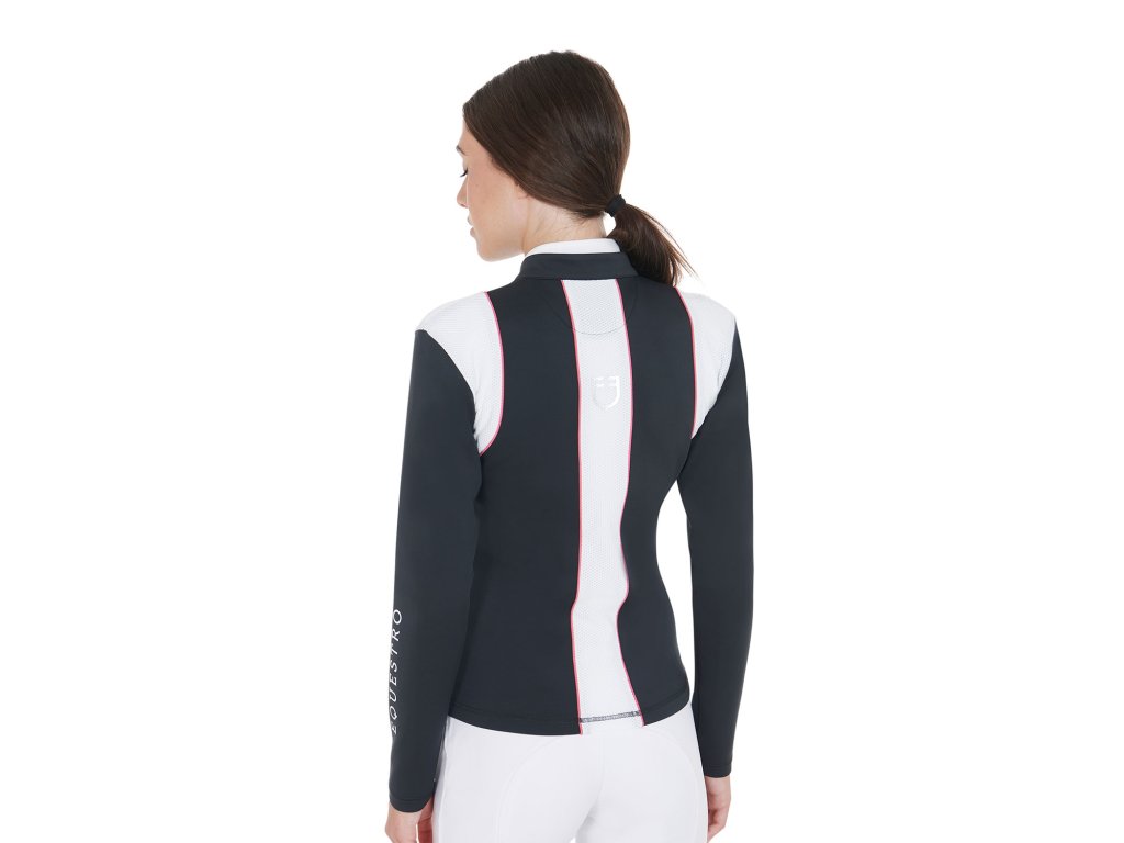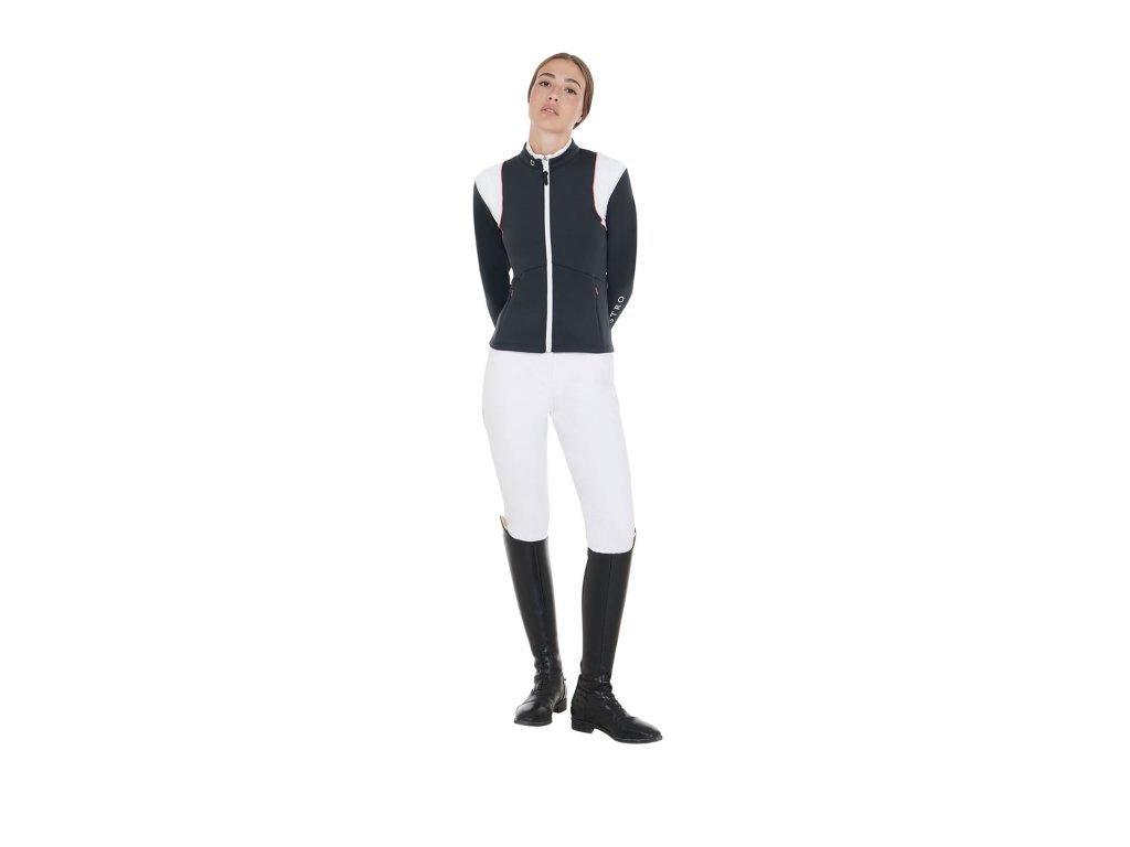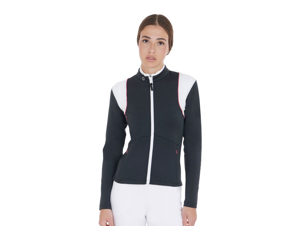 Dámska mikina slim fit z technickej látky so zapínaním vpredu a praktickými bočnými vreckami s neviditeľným zipsom. Tento odev má štíhly a dynamický strih, ktorý spája modernú ženskosť a športový výkon.