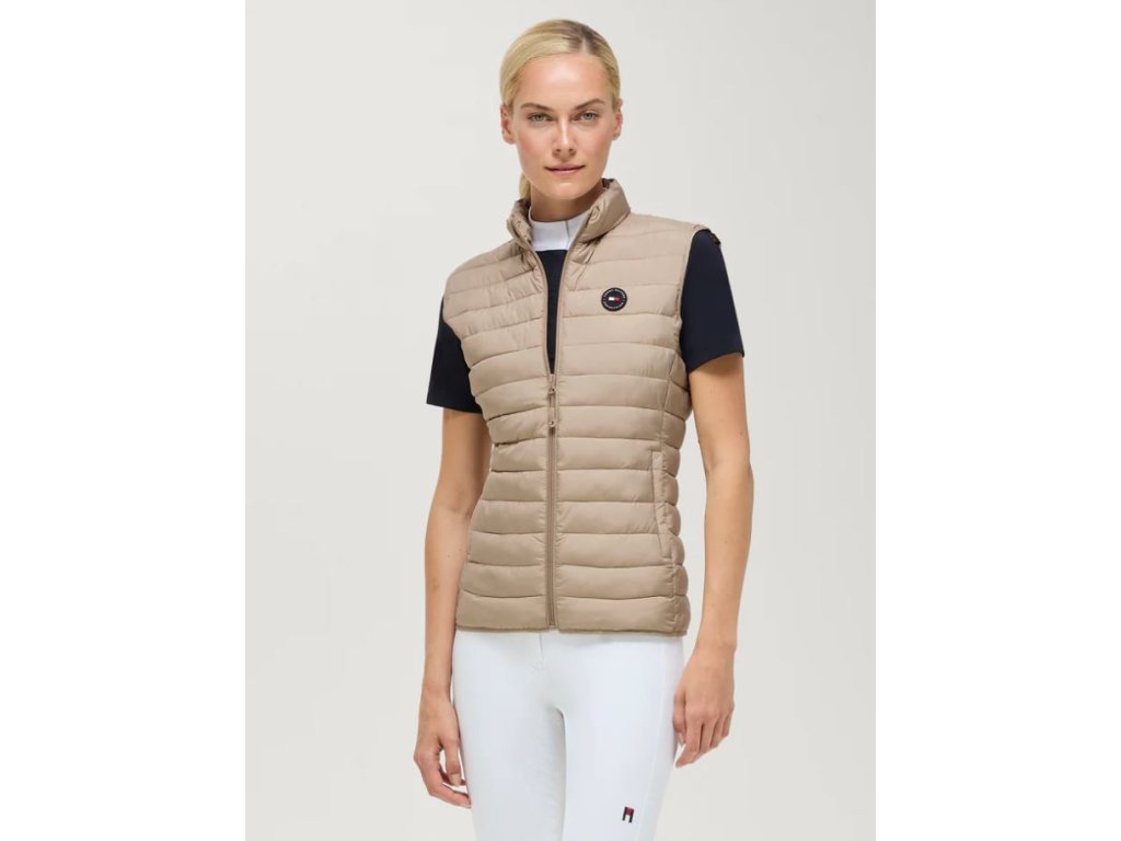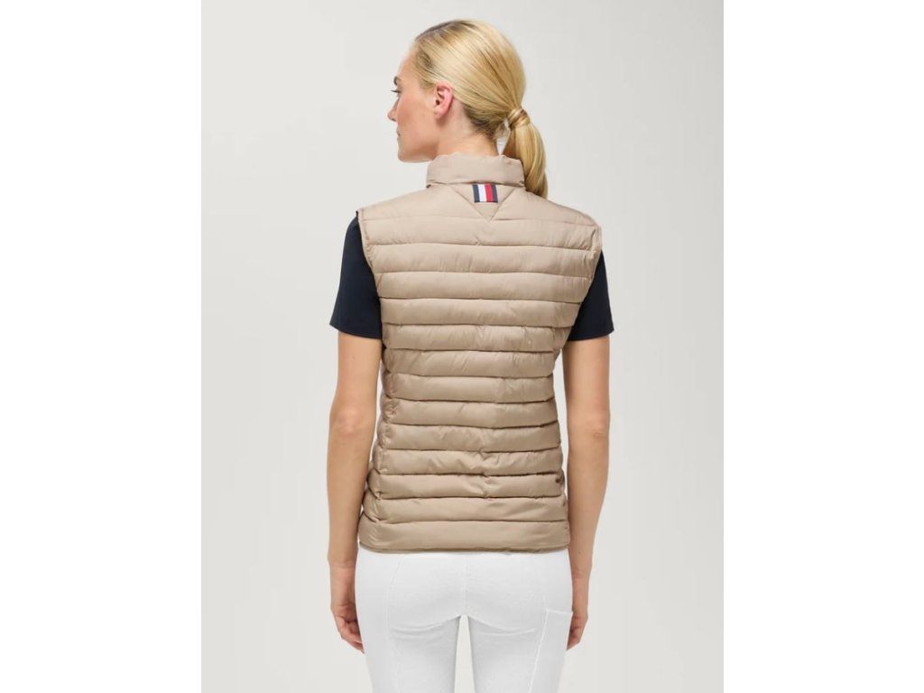 Vestu zdobí ikonická nášivka s logom Tommy Hilfiger Equestrian na hrudi, značkový zipsový puller a charakteristický global pruh, ktoré jej dodávajú športovo-elegantný vzhľad. Produkt je navyše vyrobený bez použitia materiálov živočíšneho pôvodu, čo z neho robí modernú a zodpovednú voľbu pre jazdcov.