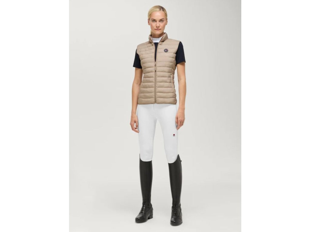 Štýlová a praktická dámska jazdecká vesta s ľahkou izoláciou je ideálnou voľbou na tréning, prácu v stajni aj každodenné nosenie. Vďaka prešívanej puffer konštrukcii poskytuje príjemné teplo, pričom zostáva ľahká a pohodlná, takže neobmedzuje pohyb v sedle.