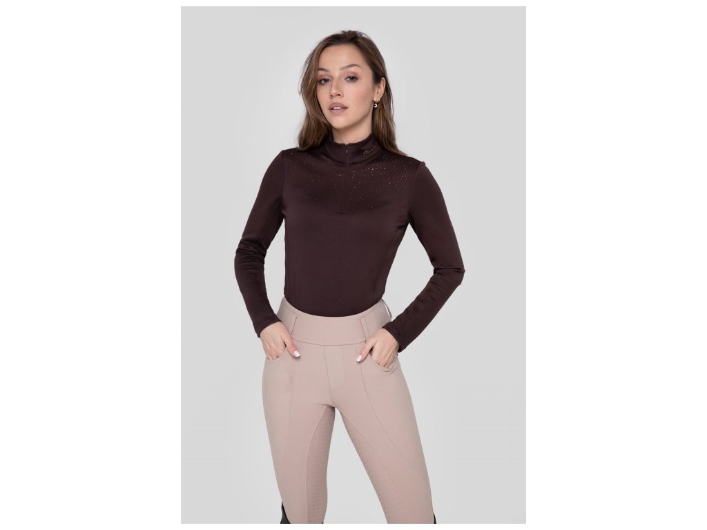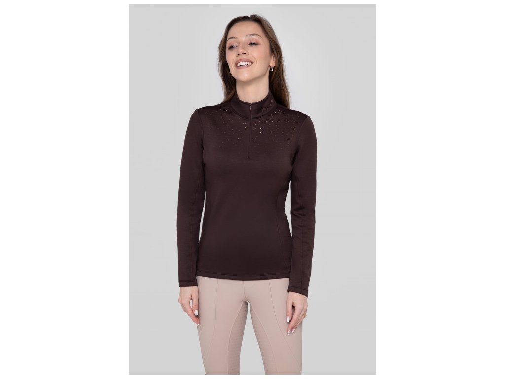 A women’s long-sleeve training shirt made from the highest quality fabric that is comfortable, flexible, and exceptionally warm. The inside is lined with soft fleece that provides excellent thermal insulation and feels pleasant against the skin. The highly fitted cut beautifully highlights the silhouette.