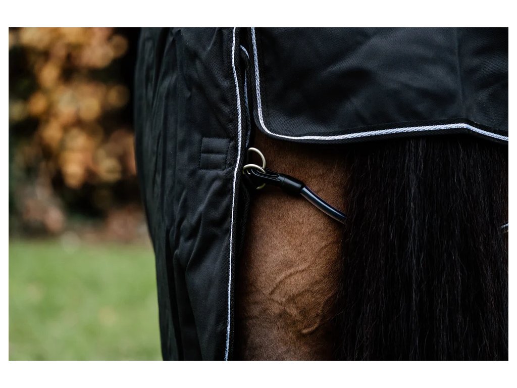For a secure and comfortable fit, the blanket features fixed belly surcingles with T-buckles and two T-buckles at the chest. The washable tail cord is removable, making maintenance simple and hygienic. Additionally, the blanket has an attachment for an underblanket, allowing you to easily add extra warmth when needed.