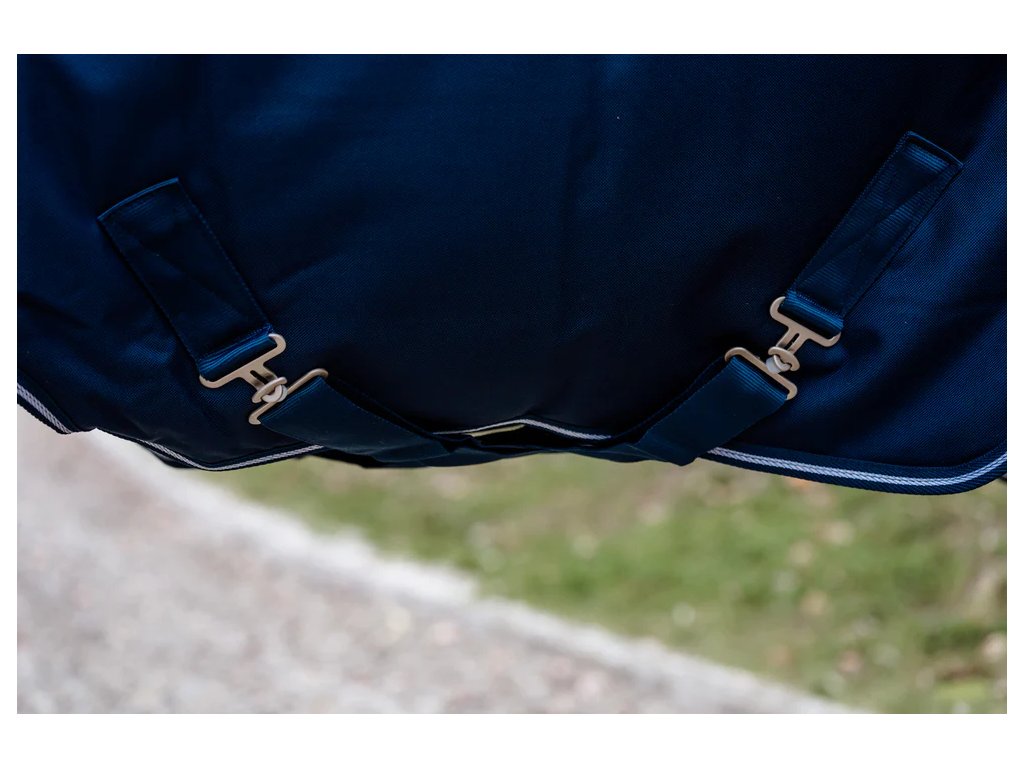 For a secure and comfortable fit, the blanket features fixed belly surcingles with T-buckles and two T-buckles at the chest. The washable tail cord is removable, making maintenance simple and hygienic. Additionally, the blanket has an attachment for an underblanket, allowing you to easily add extra warmth when needed.