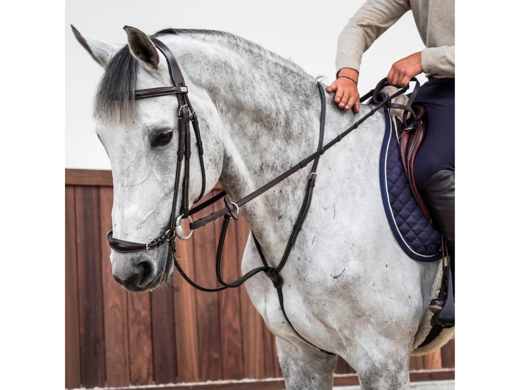 The noseband can be adjusted under the bit and on both sides on top of the nose. The leather is finished with cream-colored stitching and the buckles are silver-colored. This bridle does not include reins. The reins can be purchased together with the bridle in a bundle. Please don't forget to specify the desired color for both the bridle and the reins. This product has a long lifespan with proper leather maintenance.Additional parameters