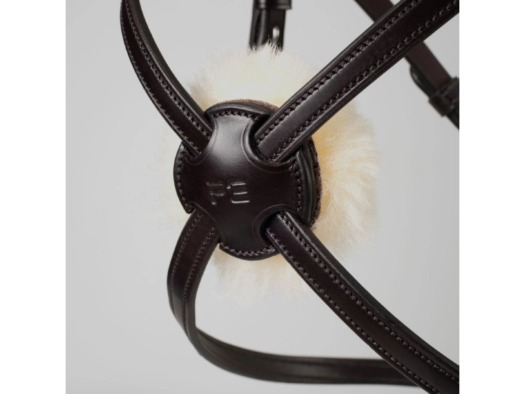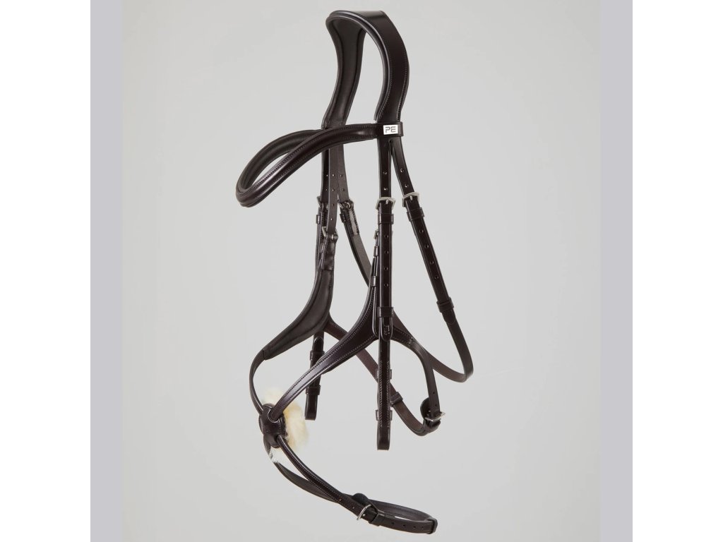 - Padded, shaped browband with round raised design and 'PE' branded brooch either side