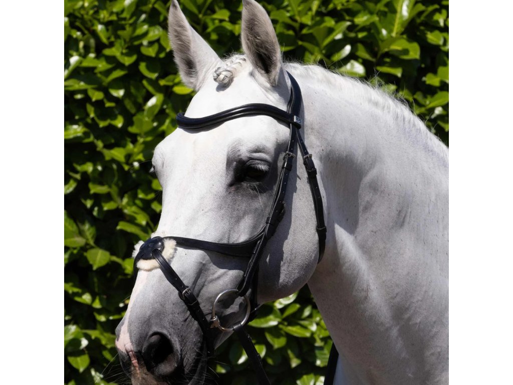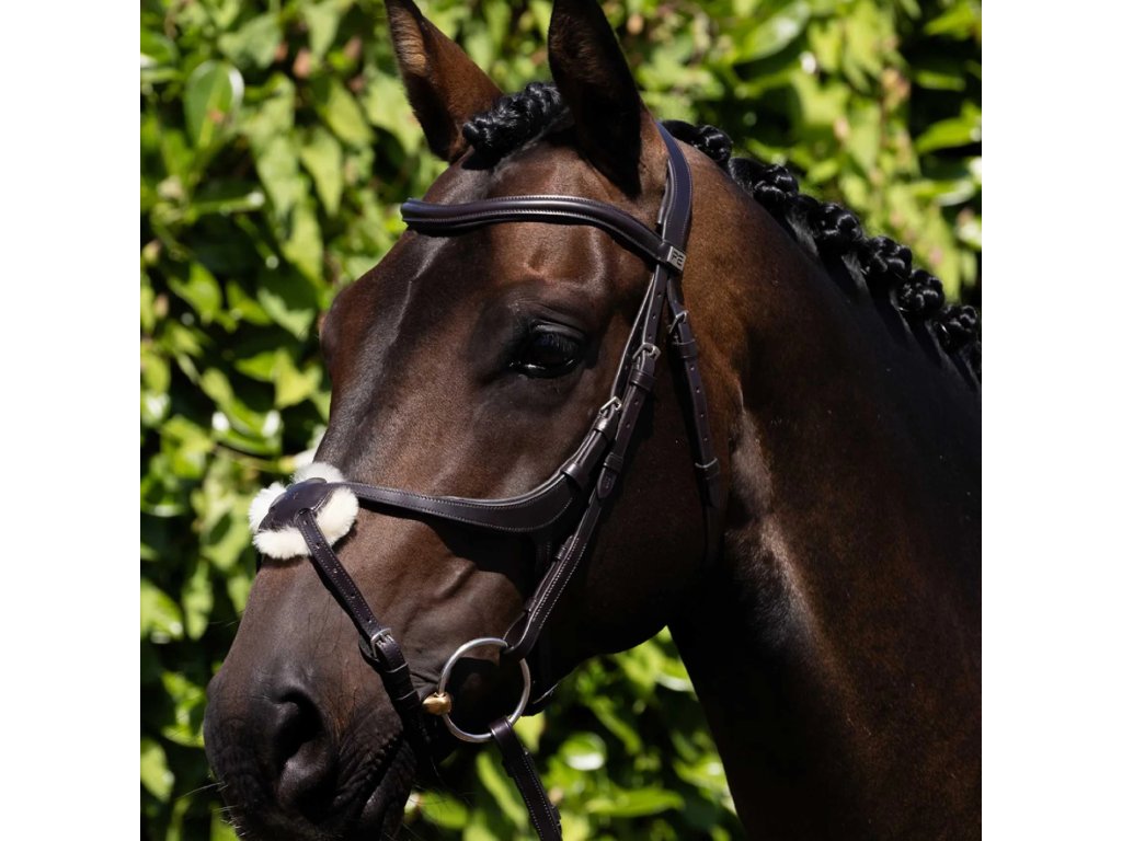 The anatomical Mexican grackle noseband has been designed to help prevent the horse from crossing their jaw and opening their mouth. It features softly padded sides for maximum comfort and a luxuriously soft merino wool pad protects the nose where the grackle noseband crosses over at the front. This is secured using Velcro, enabling you to remove it for washing when needed. Finished with the highest quality, delicate stitching and stainless steel fastenings this bridle is a stylish and worthy addition to any horse’s wardrobe.