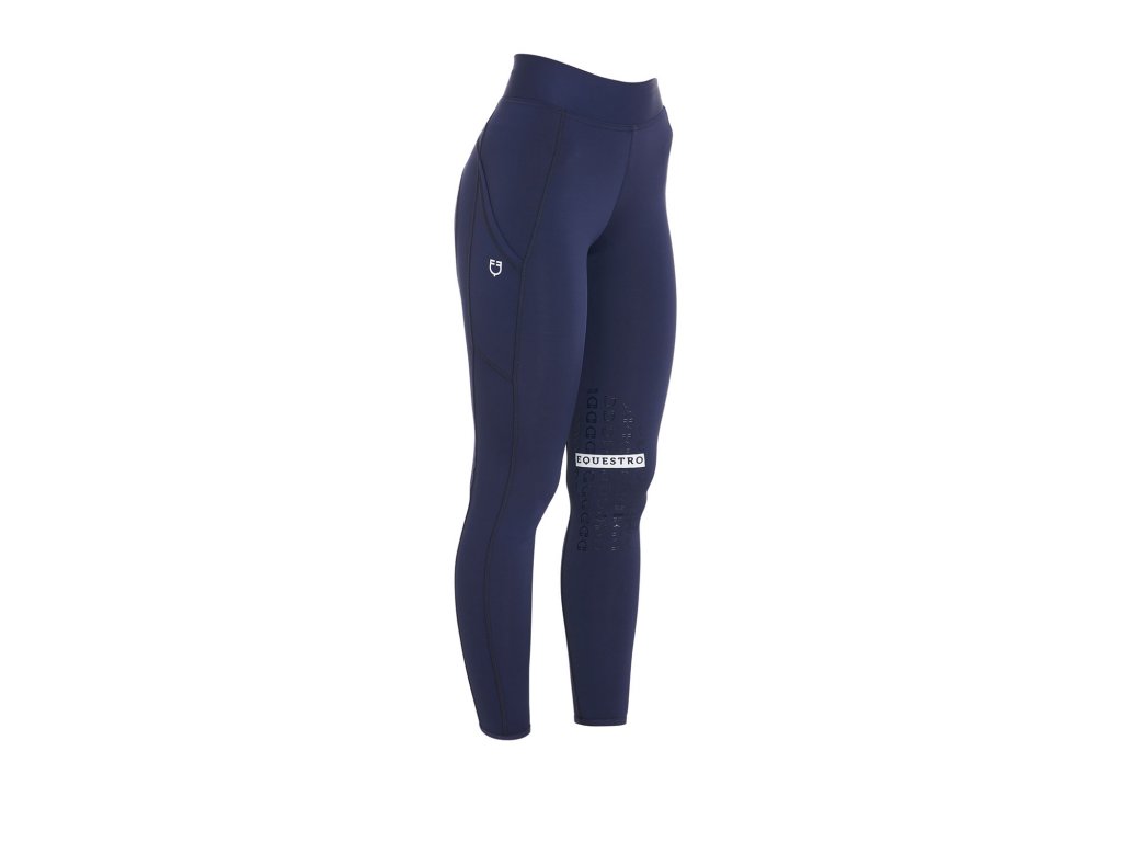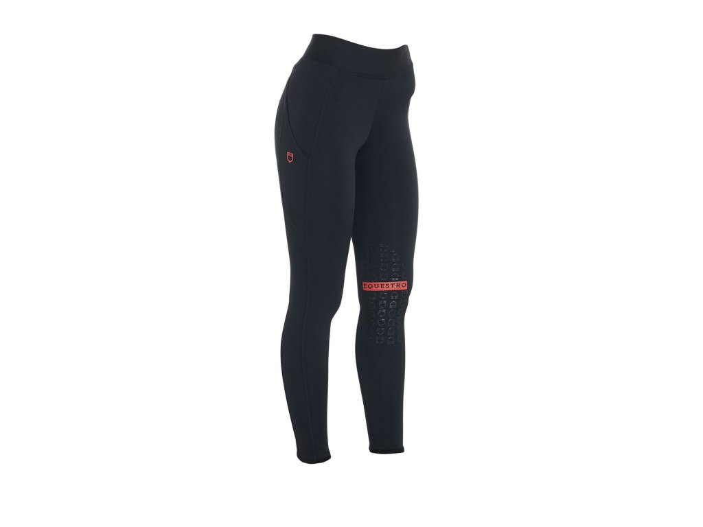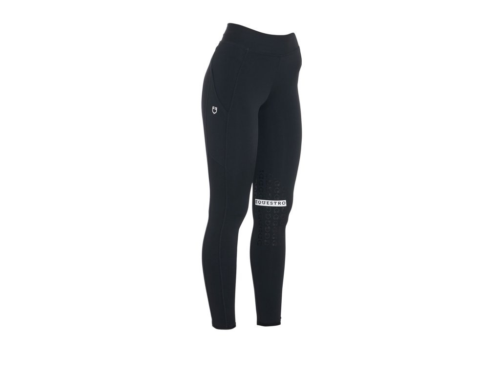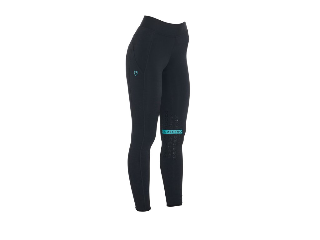Dámske jazdecké legíny Equestro z priedušnej technickej tkaniny, ktorá zabezpečuje odvádzanie potu. Kolenný grip „Equestro“ zaisťuje stabilitu a priľnavosť k sedlu a zároveň zaručuje maximálnu voľnosť pohybu. Bočné vrecká na smartphone sú praktické, pohodlné a zdobené logom Equestro na pravom vrecku.