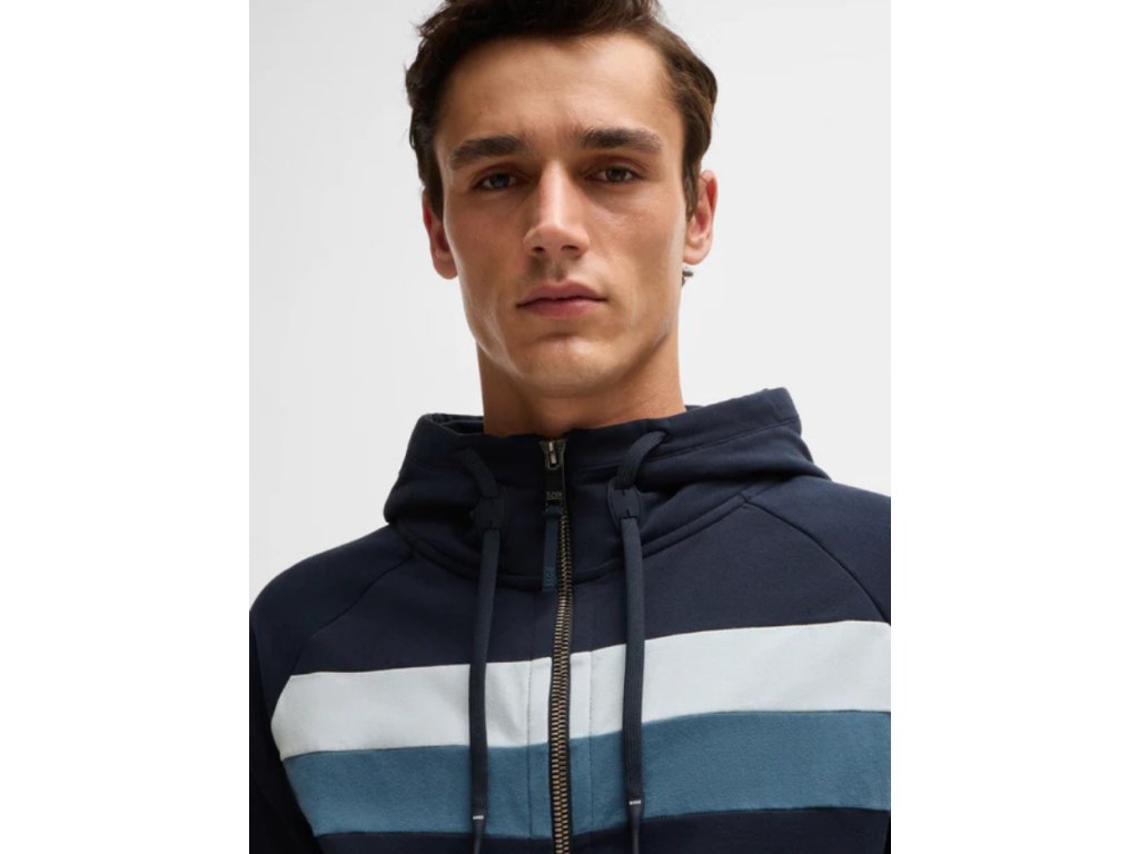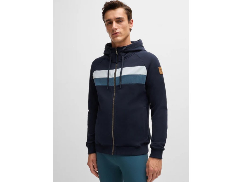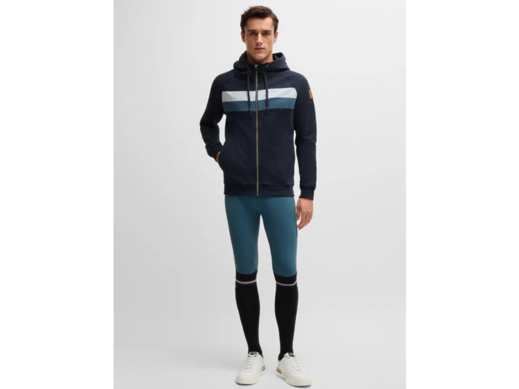 Najpredávanejšia mikina na zips s kapucňou a praktickými bočnými vreckami. V hornej časti hrude ju zdobia dva kontrastné pruhy a na ľavom ramene sa nachádza koženkový štítok s logom BOSS Equestrian.