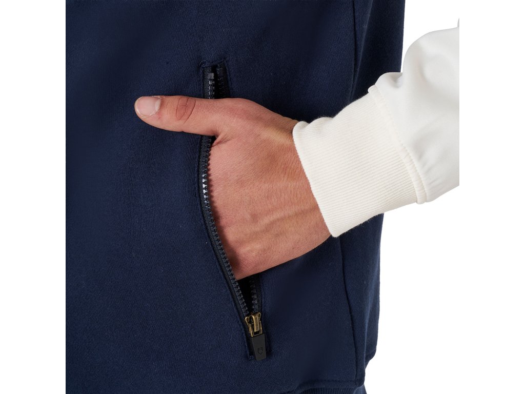 Bočné vrecká na zips dodávajú mikine funkčný rozmer a umožňujú bezpečné uloženie drobností. Rebrované manžety a spodný lem podčiarkujú športový charakter odevu a zároveň poskytujú lepšiu ochranu pred vetrom a chladom.