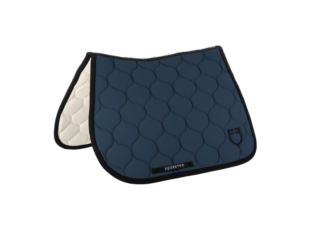 Skoková plstenka, vyrobená z pokrokovej technickej tkaniny, ktorá zaručuje výnimočnú priedušnosť a zároveň poskytuje vynikajúci tlmiaci efekt medzi sedlom a chrbtom koňa. Inovatívny dizajn včelieho plástu na vnútornej strane podporuje optimálne vetranie a zaisťuje pravidelné prúdenie vzduchu, ktoré pomáha znižovať potenie koňa počas aktivity. Jeho anatomický tvar je špeciálne navrhnutý tak, aby zabezpečil, že kohútik koňa zostane bez nežiaduceho tlaku a trenia, čo mu umožní pohybovať sa voľne a bez nepohodlia. Vyznačuje sa dekoratívnym kruhovým prešívaním, ktoré nielen dodáva nádych elegancie, ale prispieva aj k štrukturálnej pevnosti výrobku. Táto podsedlová podložka je výsledkom starostlivého dizajnu zameraného na vytvorenie produktu, ktorý ponúka dokonalú synergiu medzi pevnosťou, priedušnosťou a sofistikovanosťou. Kontrastné vyšívané logo na ľavej strane dodáva výrazný detail..