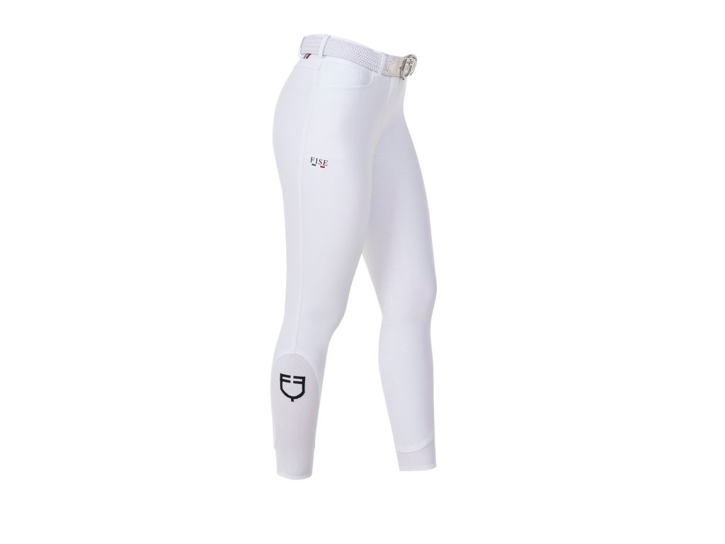 Dámske jazdecké rajtky Equestro X FISE v slim fit strihu, vyrobené z bi-elastického a priedušného technického materiálu, s pohodlnými a praktickými prednými vreckami.