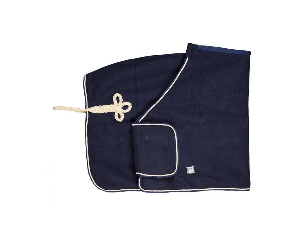 Vlnená deka s ozdobným lemom, zakončená dekoratívnym popruhom pod chvost. Vyrobená z pravej vlny, ideálna na zimu.