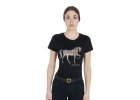 Dámske slim fit tričko z priedušnej technickej látky s krátkymi rukávmi, ideálne na letné obdobie vďaka perforovanej látke. Zdobené logom equestro so štrasovými kamienkami.
